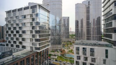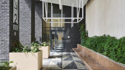 Главное о доме. "Событие" — городской квартал в Раменках, между длинными бульварами и зелёными массивами. Архитектура собирает башни и камерные корпуса в единую линию: спокойная палитра, крупные окна, чёткие вертикали. Во входных группах — натуральные материалы, мягкий свет, стойки ресепшн и зоны для коротких встреч. На стилобате проложили бульвары и дворы без машин с детскими и спортивными площадками и несколькими тихими лаунж-зонами. Внутри работают клубные пространства и небольшие кабинеты для работы. Паркинг со спуском на лифте связывает уровень улицы и жилые этажи.