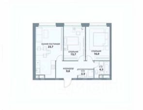 Планировкой предусмотрено: две спальни и просторная кухня/гостиная.
