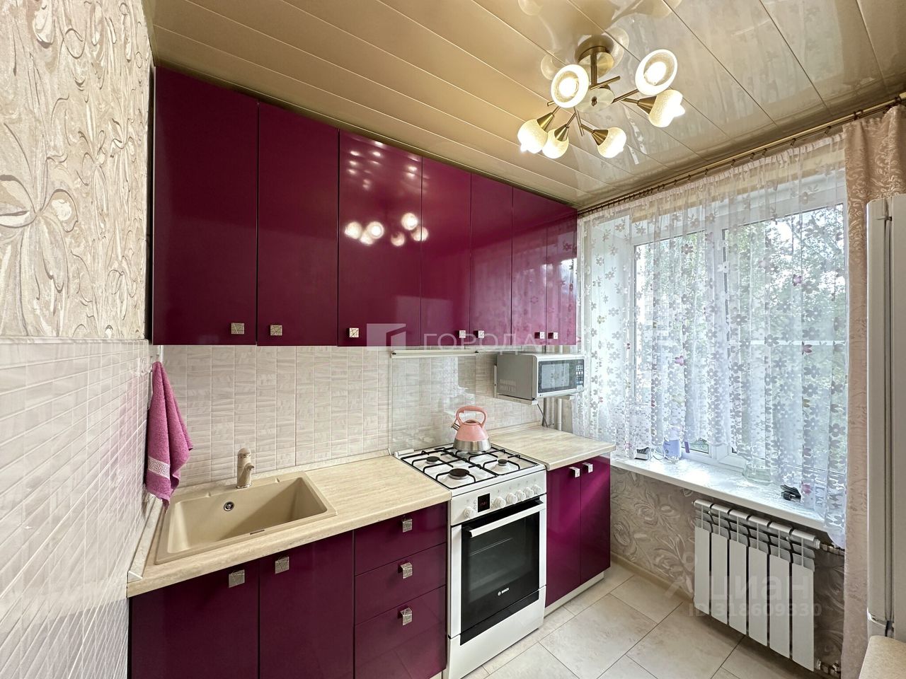 - ремонт выполнен в светлых спокойных тонах ( на полу качественный ламинат, пластиковые окна, установлены новые радиаторы, тканевые натяжные потолки в гостиной, качественные межкомнатные двери