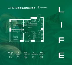 В районе Москворечье-Сабурово продается 3-комнатная квартира площадью 65.47 м². Она расположена на 8 этаже в 262 корпусе нового жилого квартала LIFE Варшавская.