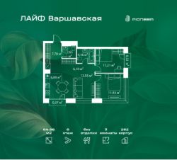 В районе Москворечье-Сабурово продается 3-комнатная квартира площадью 64.96 м². Она расположена на 8 этаже в 262 корпусе нового жилого квартала Лайф Варшавская.