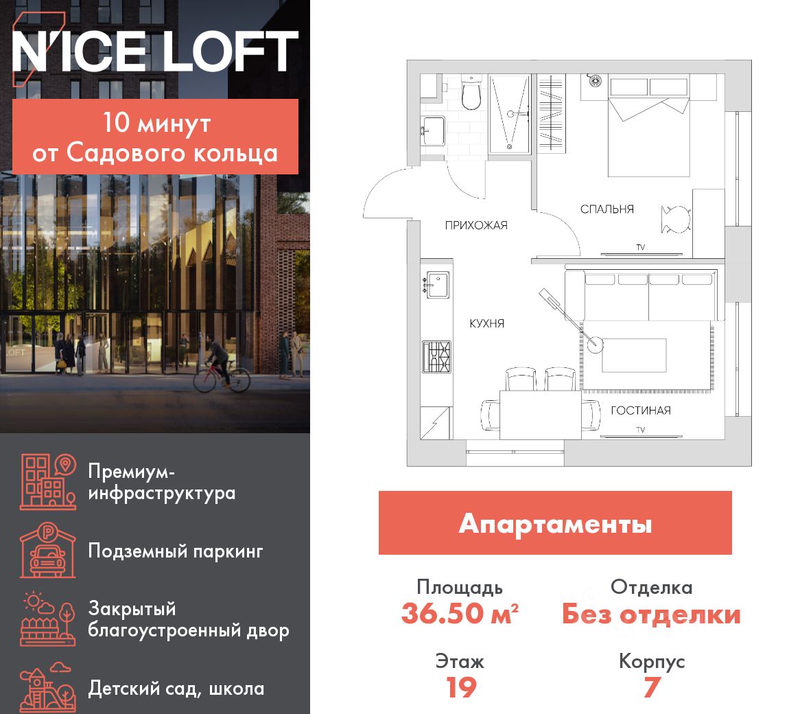NICE LOFT — готовый жилой квартал с собственным спортивным кластером в 10 минутах от Садового кольца Комплекс апартаментов бизнес-класса NICE LOFT, девелопером которого выступила компания Coldy, представляет собой знаковое жилое пространство, на территории которого органично объединены высококачественная инфраструктура для комфортной жизни и полноценный спортивный кластер. NICE LOFT — новая спортивная доминанта Москвы, где для жителей и их гостей предусмотрено более 20 000 м², созданных специально для тренировок, игр, восстановления и оздоровления. Автором выразительной городской эстетики выступило архитектурное бюро APEX. Строгие силуэты фасадов эффектно возвышаются над благоустроенным окружением, а световые блики элегантно подчеркивают структурное фасадное остекление. Сердце проекта — физкультурно-оздоровительный комплекс с двумя ледовыми аренами формата НХЛ — профессиональными площадками. Помимо спортивных арен на территории NICE LOFT предусмотрено пять многофункциональных залов, где каждый, сможет реализовать свой спортивный потенциал. Для тех, кто предпочитает тренировки и прогулки на свежем воздухе, создан спортивный парк общей площадью 6 300 м² с воркаут-зонами, игровыми площадками и уединенными пространствами для отдыха. Также внутри квартала проложена километровая беговая дорожка, которая доступна к использованию в любое время года. Особое внимание архитекторы уделили входной группе — просторное авторское лобби с потолками до 9 метров с использованием природных элементов. Резиденты и их гости смогут насладиться садом, не покидая пределы дома. Территория апарт-комплекса NICE LOFT соответствует современным стандартам безопасности: инновационная система видеонаблюдения, охраняемый подземный паркинг и круглосуточный консьерж-сервис. Преимущества NICE LOFT: Готовый жилой квартал с собственным спортивным кластером в 10 минутах от Садового кольца Современная архитектура с выразительными контрастными фасадами Спортивная инфраструктура 20 000 м²: 2 ледовые арены формата НХЛ, 5 залов, беговая дорожка 1 км Спортивный парк 6 300 м² с зонами для разных видов активностей Более 10 видов спорта в одном кластере Апартаменты с панорамными окнами и потолками до 5 метров Видовые лоты с террасами и патио Авторское лобби с потолками до 9 метров Консьерж-сервис 24/7 Охраняемый подземный паркинг