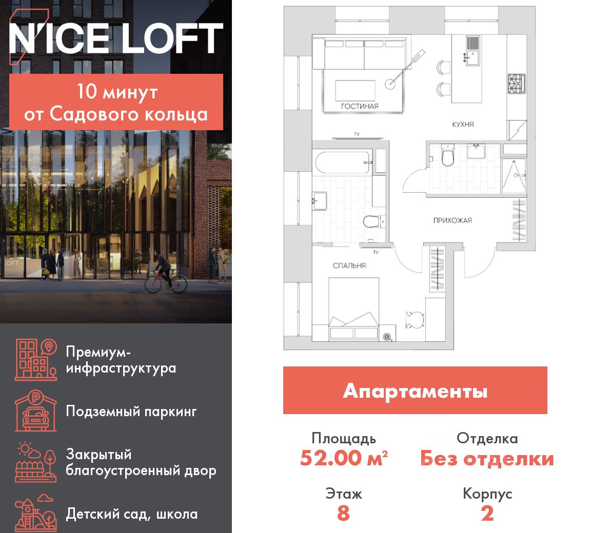 NICE LOFT — готовый жилой квартал с собственным спортивным кластером в 10 минутах от Садового кольца Комплекс апартаментов бизнес-класса NICE LOFT, девелопером которого выступила компания Coldy, представляет собой знаковое жилое пространство, на территории которого органично объединены высококачественная инфраструктура для комфортной жизни и полноценный спортивный кластер. NICE LOFT — новая спортивная доминанта Москвы, где для жителей и их гостей предусмотрено более 20 000 м², созданных специально для тренировок, игр, восстановления и оздоровления. Автором выразительной городской эстетики выступило архитектурное бюро APEX. Строгие силуэты фасадов эффектно возвышаются над благоустроенным окружением, а световые блики элегантно подчеркивают структурное фасадное остекление. Сердце проекта — физкультурно-оздоровительный комплекс с двумя ледовыми аренами формата НХЛ — профессиональными площадками. Помимо спортивных арен на территории NICE LOFT предусмотрено пять многофункциональных залов, где каждый, сможет реализовать свой спортивный потенциал. Для тех, кто предпочитает тренировки и прогулки на свежем воздухе, создан спортивный парк общей площадью 6 300 м² с воркаут-зонами, игровыми площадками и уединенными пространствами для отдыха. Также внутри квартала проложена километровая беговая дорожка, которая доступна к использованию в любое время года. Особое внимание архитекторы уделили входной группе — просторное авторское лобби с потолками до 9 метров с использованием природных элементов. Резиденты и их гости смогут насладиться садом, не покидая пределы дома. Территория апарт-комплекса NICE LOFT соответствует современным стандартам безопасности: инновационная система видеонаблюдения, охраняемый подземный паркинг и круглосуточный консьерж-сервис. Преимущества NICE LOFT: Готовый жилой квартал с собственным спортивным кластером в 10 минутах от Садового кольца Современная архитектура с выразительными контрастными фасадами Спортивная инфраструктура 20 000 м²: 2 ледовые арены формата НХЛ, 5 залов, беговая дорожка 1 км Спортивный парк 6 300 м² с зонами для разных видов активностей Более 10 видов спорта в одном кластере Апартаменты с панорамными окнами и потолками до 5 метров Видовые лоты с террасами и патио Авторское лобби с потолками до 9 метров Консьерж-сервис 24/7 Охраняемый подземный паркинг