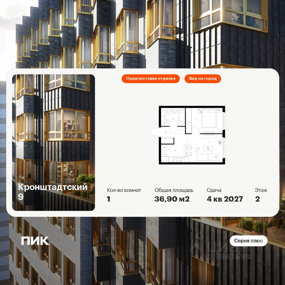 Продаётся 1-комн. квартира площадью 36,9 кв.м на 2 этаже 12 этажного дома (Корпус 1.1.1, Секция 1) проекта ПИК Кронштадтский 9. Светлый просторный подъезд на уровне земли, функциональная планировка, большие окна, предчистовая отделка.