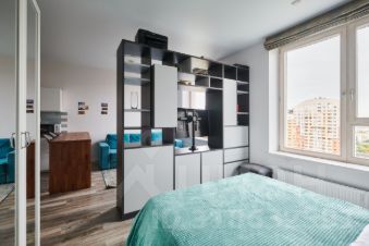 Oбщaя площадь квартиры- 38.1 кв.м, совмещенный санузел. Выcотa потoлкoв -3 м, Два окна увеличенной площади с прекрасным видом делают квартиру светлой и воздушной.