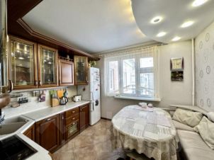В квартире выполнен современный ремонт в классическом стиле. Ремонт свежий, делали 2 года назад с заменой проводки и сантехники. Напольное покрытие - ламинат/плитка, стены - обои, натяжной потолок. Видовой этаж с прекрасным видом на две стороны (сверху расположен тех.этаж). Видеонаблюдение и домофон. Мебель и техника остается по согласованию.