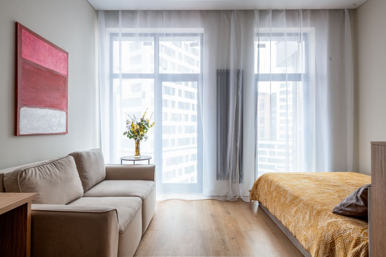 Отделка: пол кварцвинил, стены под покраску, потолок натяжной тканевый