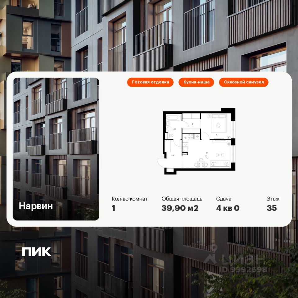 Новостройка! Продается 1-комн. кв-ра площадью 39,9 кв.м, (Корпус 1.3, Секция 3) 35 этаж 38-этажного дома в Нарвин от ПИК. Новый проект ПИК Серии плюс "Нарвин" возводится в Головинском районе Москвы.