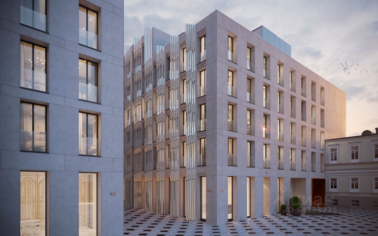 "Большая Дмитровка IX" проект реставрации объекта культурного наследия и новое строительство двух особняков. На закрытой территории расположены особняки с резиденциями класса deluxe, вертикальный лес и 3-уровневый подземный паркинг.