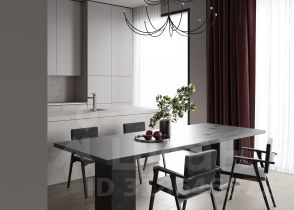 Отделка осуществляется с применением натуральных материалов: мрамора и ценных пород дерева. Подобраны элегантные детали интерьера и мягкая мебель. На кухне встроена бытовая техника Miele и кухонные модули Rossana. Стены и пол ванных комнат выложены мрамором Pietra Grey, установлен санфаянс Villeroy&Boch и Gessi.