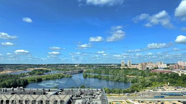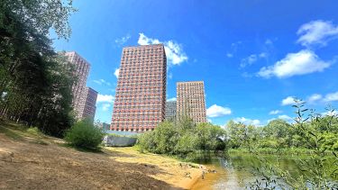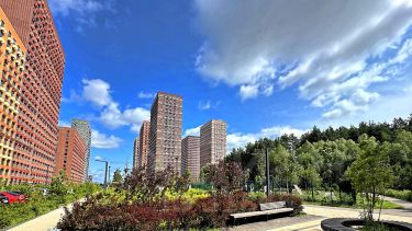Москва, ЗАО, Кунцево, ЖК "Мякинино Парк", дом 1, корп.1. Современный жилой комплекс окруженный рекой и лесом, 15 минут транспортом до метро Строгино или Крылатское, в 2026 году планируется открытие ст. метро "Липовая Роща" - 5 минут транспортом от дома.