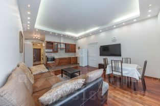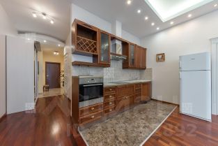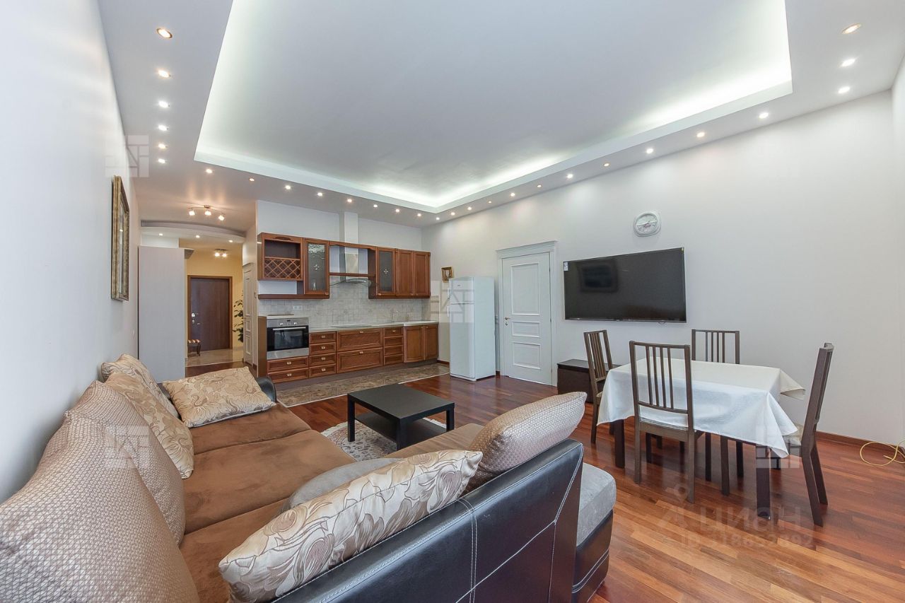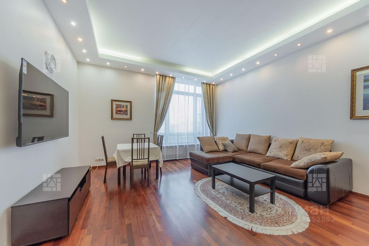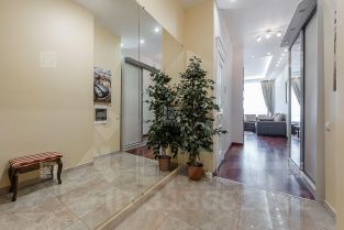 В продажу предлагается двухкомнатная квартира общей площадью 75 м². В квартире выполнен качественный ремонт с использованием натуральных материалов. Современная планировка включает в себя просторную гостиную с открытой кухней-столовой, спальню со своим санузлом с джакузи, гостевой санузел и просторный коридор. Отличительной особенностью квартиры является прекрасный вид на здание МГУ и зеленую территорию комплекса. В собственности есть1 м/место в подземном паркинге за дополнительную плату.