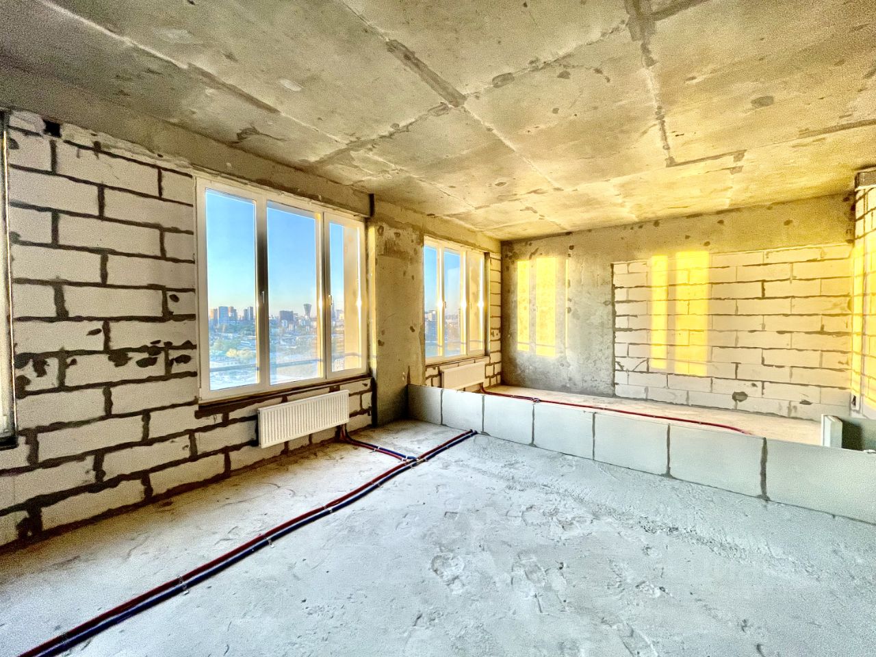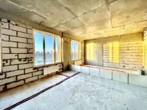 В квартире три окна и два санузла, а также свободная планировка, что позволяет сделать 3-комнатную квартиру евро стандарта с просторной кухней-гостиной и двумя спальнями. Панорамный вид, окна выходят на набережную и город.
