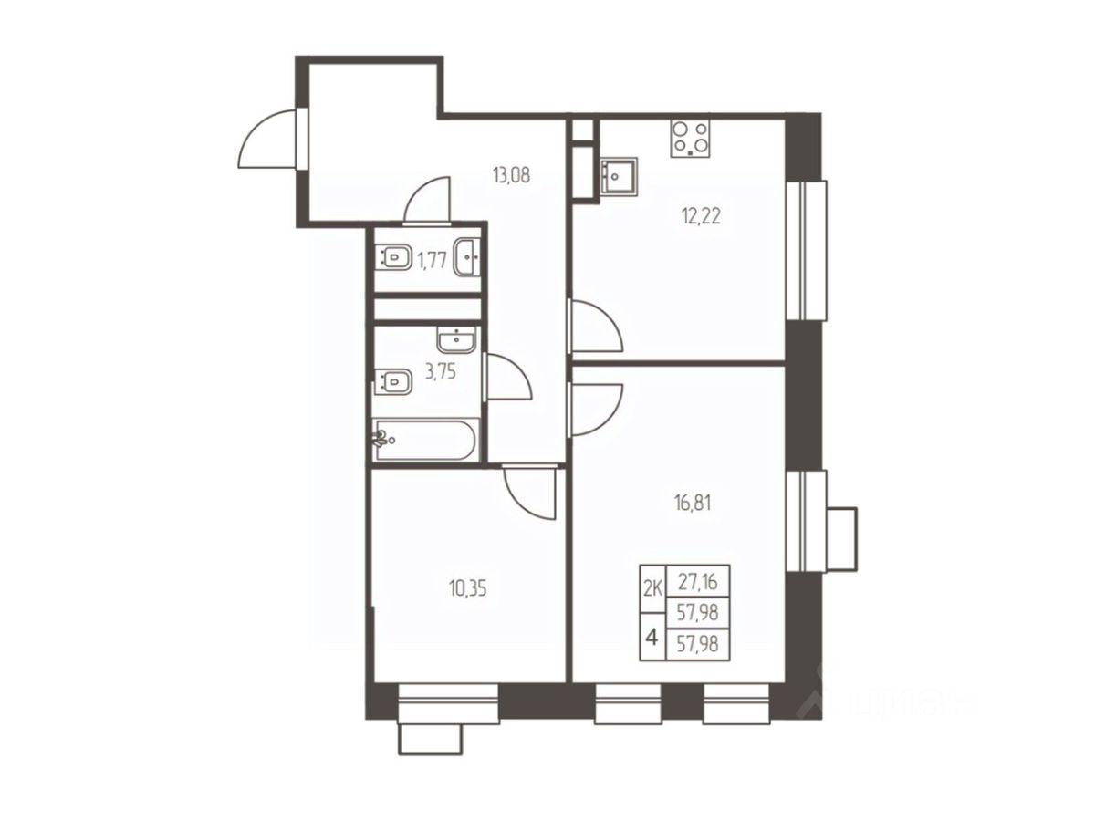 Общая площадь58 м²