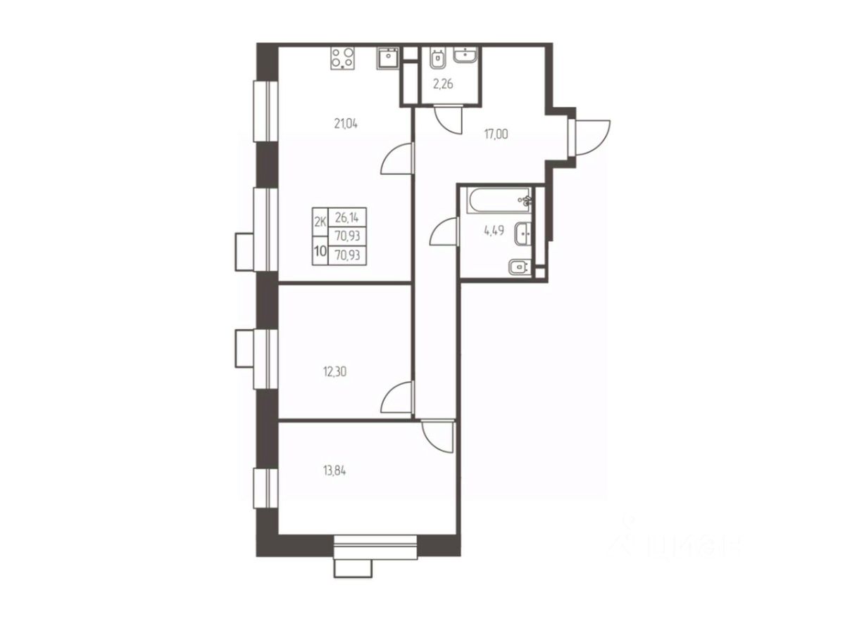 70,9 м²