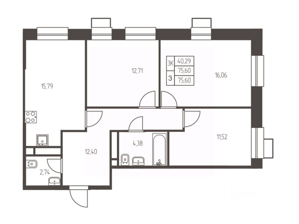 75,6 м²