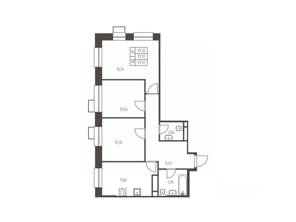 70,9 м²