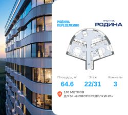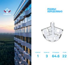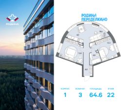 Продаётся 3-комнатная квартира площадью 64.6 м² на 22 этаже в Жилом Комплексе "Родина Переделкино".
