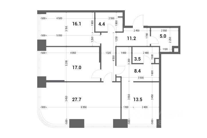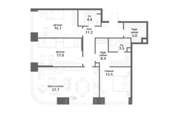 Угловая квартира с тремя спальнями и просторной кухней-гостиной.