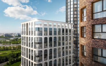 Изящные скругленные французские окна выходят во двор на на юго-запад, юг и юго-восток между других корпусов, обеспечивая приятные виды и прекрасную инсоляцию.
