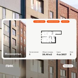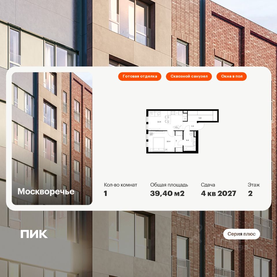 Продаётся 1-комн. квартира площадью 39,4 кв.м на 2 этаже 12 этажного дома (Корпус 1.4, Секция 7) проекта ПИК Москворечье. Светлый просторный подъезд на уровне земли, функциональная планировка, большие окна, c отделкой.