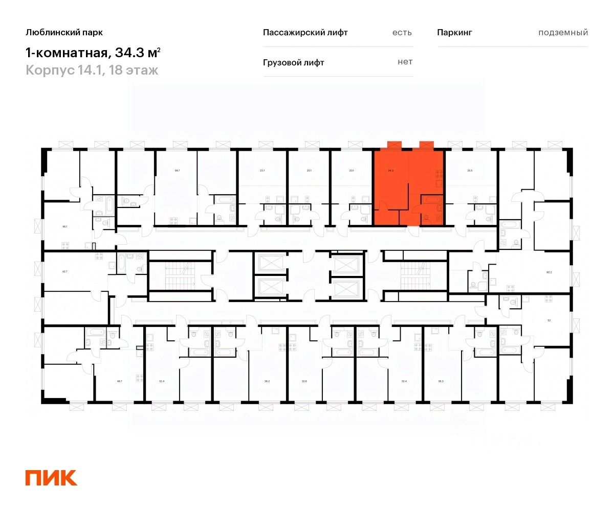 Продаётся 1-комн. квартира площадью 34,3 кв.м на 18 этаже 33 этажного дома (Корпус 14.1, Секция 1) проекта ПИК Люблинский парк. Светлый просторный подъезд на уровне земли, функциональная планировка, большие окна, c отделкой.