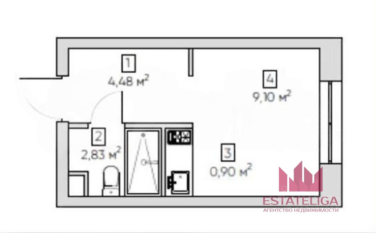 Апартаменты расположены на 10-м этаже 21-этажного монолитного дома, корпус 5. Общая площадь студии — 17,31 кв. м, жилая площадь — 9,1 кв. м, кухня — 4 кв. м. Высота потолков — 3 метра, что визуально расширяет пространство.