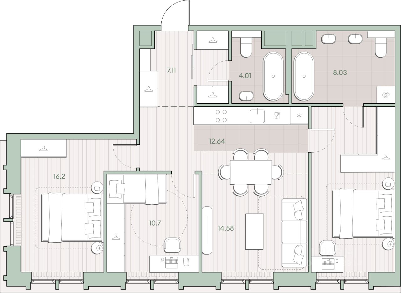 Продаётся 3-комнатная квартира общей площадью 85.61 кв.м. без отделки. Квартира расположена на 9 этаже корпуса 4.2 в жилом комплексе бизнес-класса "Среда на Кутузовском" в пешей доступности от метро "Кунцевская".