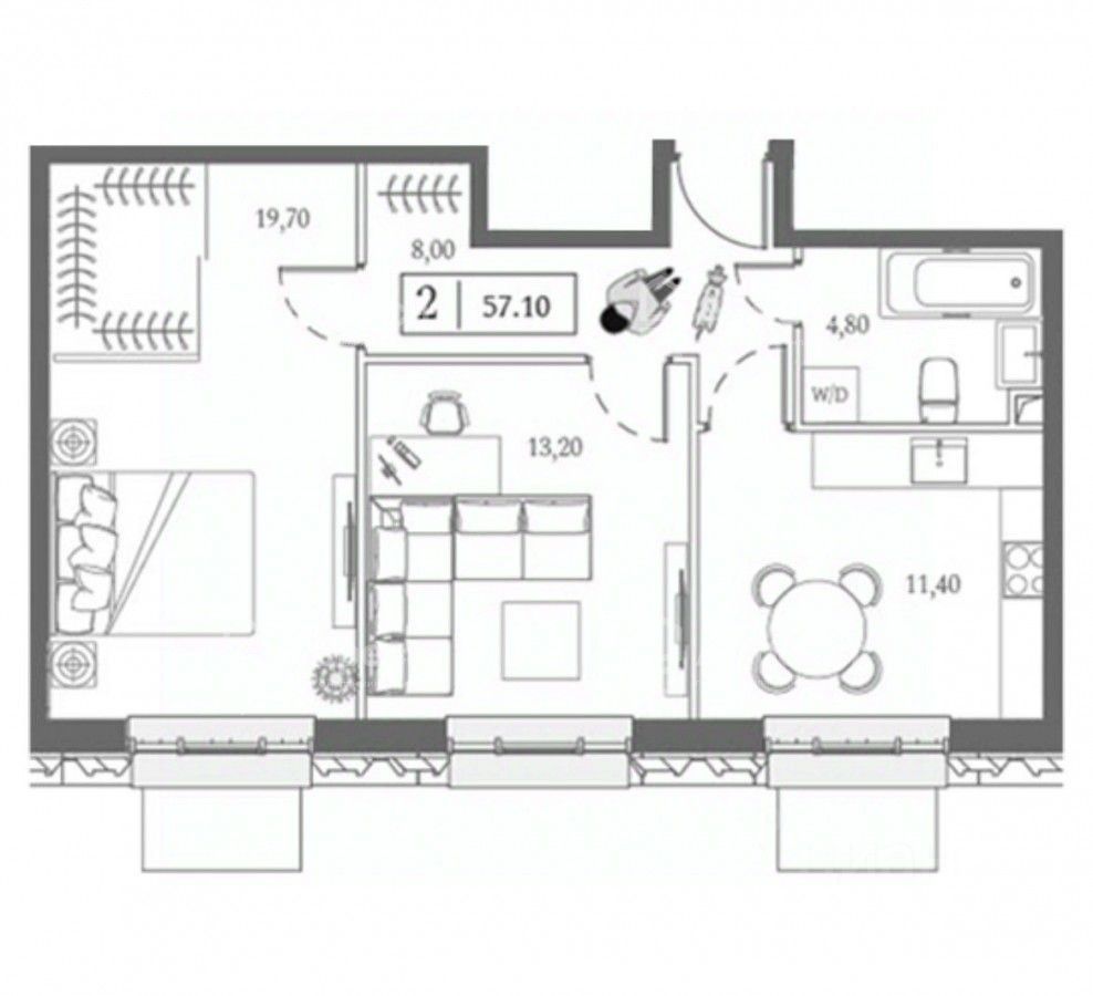 Продается двухкомнатная квартира без отделки в комплексе бизнес класса общей площадью 57,1 м², включающая просторную жилую зону площадью 32,9 м² и удобную кухню площадью 11,4 м². Такая планировка позволяет создать комфортное и функциональное пространство для жизни семьи или пары. Квартира расположена на 6 этаже 6-этажного дома, что обеспечивает оптимальную высоту для тишины и уюта, а также быстрый доступ к лифтам. Просторные окна наполняют помещение естественным светом, создавая атмосферу легкости и простора.