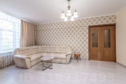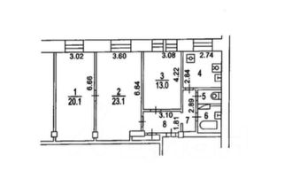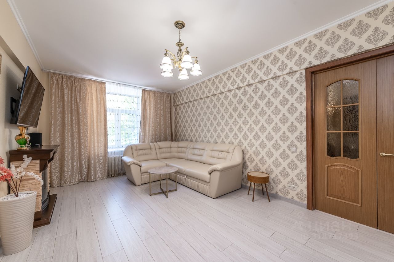 Общая площадь квартиры составляет 77,6 кв. м, жилая площадь — 56,2 кв. м, кухня — 7,6 кв. м. Квартира расположена на 3-м этаже 14-этажного кирпичного дома, построенного в 1958 году. Высокие потолки добавляют ощущение простора и света.