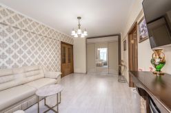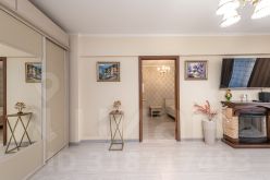 В квартире выполнен современный ремонт, что позволяет сразу заехать и жить без дополнительных вложений. В комнатах установлена стильная и удобная мебель, а на кухне — вся необходимая техника для комфортного приготовления пищи. Санузел раздельный, что очень удобно для большой семьи. Окна выходят во двор, поэтому в квартире тихо и спокойно.