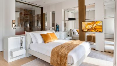 Квартира с двумя спальнями и террасой в клубном доме делюкс-класса Villa Grace на Остоженке. Квартира площадью 129 м² расположена на пятом этаже. Дизайнерский ремонт выполнен в светлых пастельных тонах в современном стиле. В отделке использованы натуральные материалы — тонированный дуб, мрамор. Квартира укомплектована мебелью и техникой премиальных мировых брендов — Minotti, Cattelan Italia, Gaggenau.