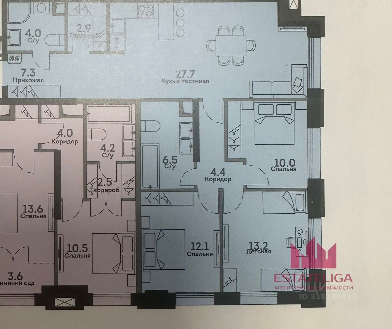 Id 54063. В ПРОДАЖЕ КВАРТИРА ФОРМАТА ЕВРО-ЧЕТЫРЕ 88,1 м²