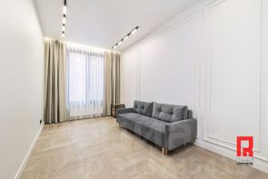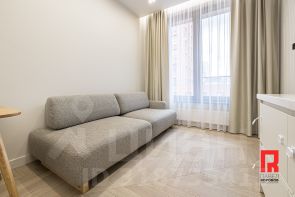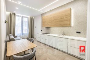 Квартира имеет удобную и эргономичную планировку: кухня-гостиная, две изолированные спальни, два санузла, гардеробная. Планировка идеально подходит для семьи с детьми.