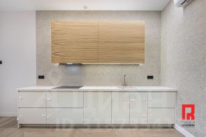 • кухонная и корпусная мебель выполнена из шпона дуба, эмали и камня.