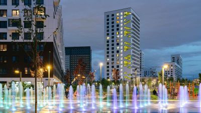 Все необходимые магазины и сервисы уже работают на первых этажах домов, открыты детские сады, школы и поликлиника. Здесь также функционирует DogHub — удобное место для тренировок и активных игр с питомцем.