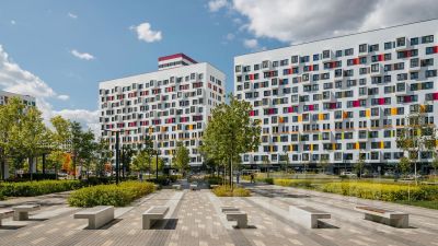 Двор-парк — это приватное пространство жителей: сюда можно попасть из подъезда или через калитку, приложив магнитный ключ. Во дворах-парках тихо и уютно: здесь много зелени, нет машин, а площадки для шумных видов спорта, например баскетбола или футбола, расположены с другой стороны домов.