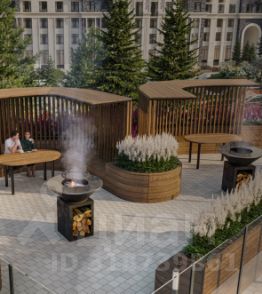 На возвышенности зона для барбекю с грилем, столами, лавочками и беседками с навесами и лучшими панорамный вид на ландшафтный двор-парк. Свой пруд у вас во дворе.