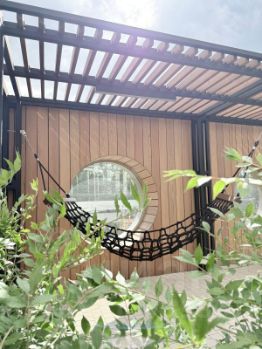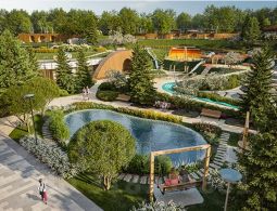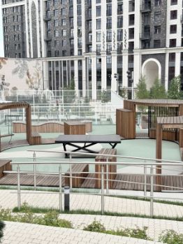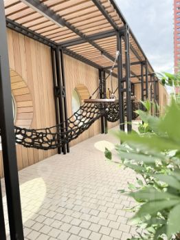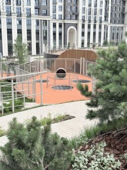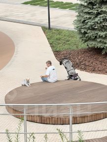 Пространство ландшафтного двор-парка разделено на зоны для активного и спокойного отдыха с зелёными уголками и гамаками для любителей тишины.