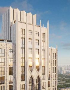 Дом Достижение отличается от большинства современных новостроек торжественным и изящным стилем ардеко.