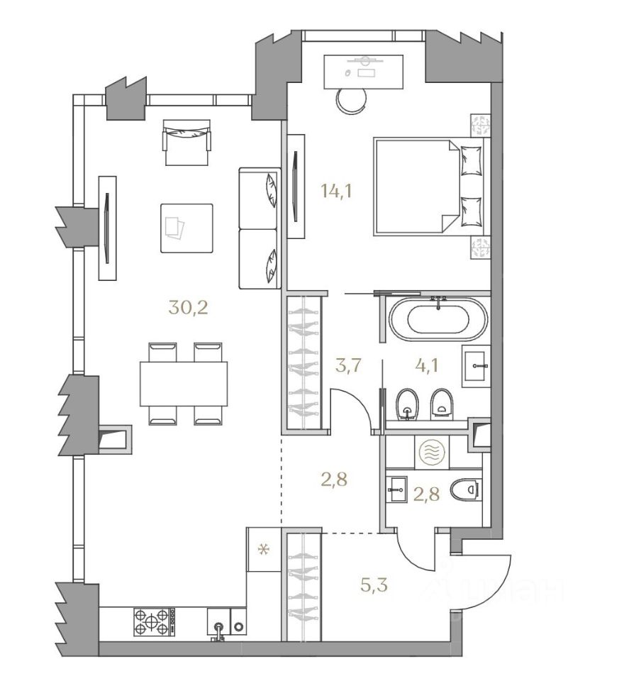 - Amenities на -1 этаже дома только для жителей - home-office, спортивная студия для персональных тренировок