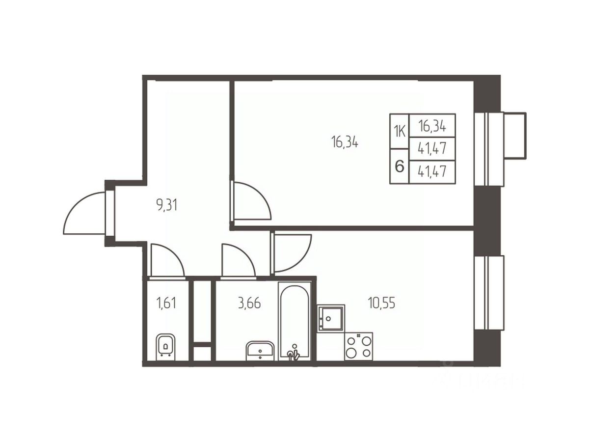 Общая площадь41,5 м²