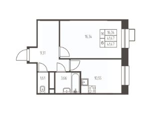 16,3 м²