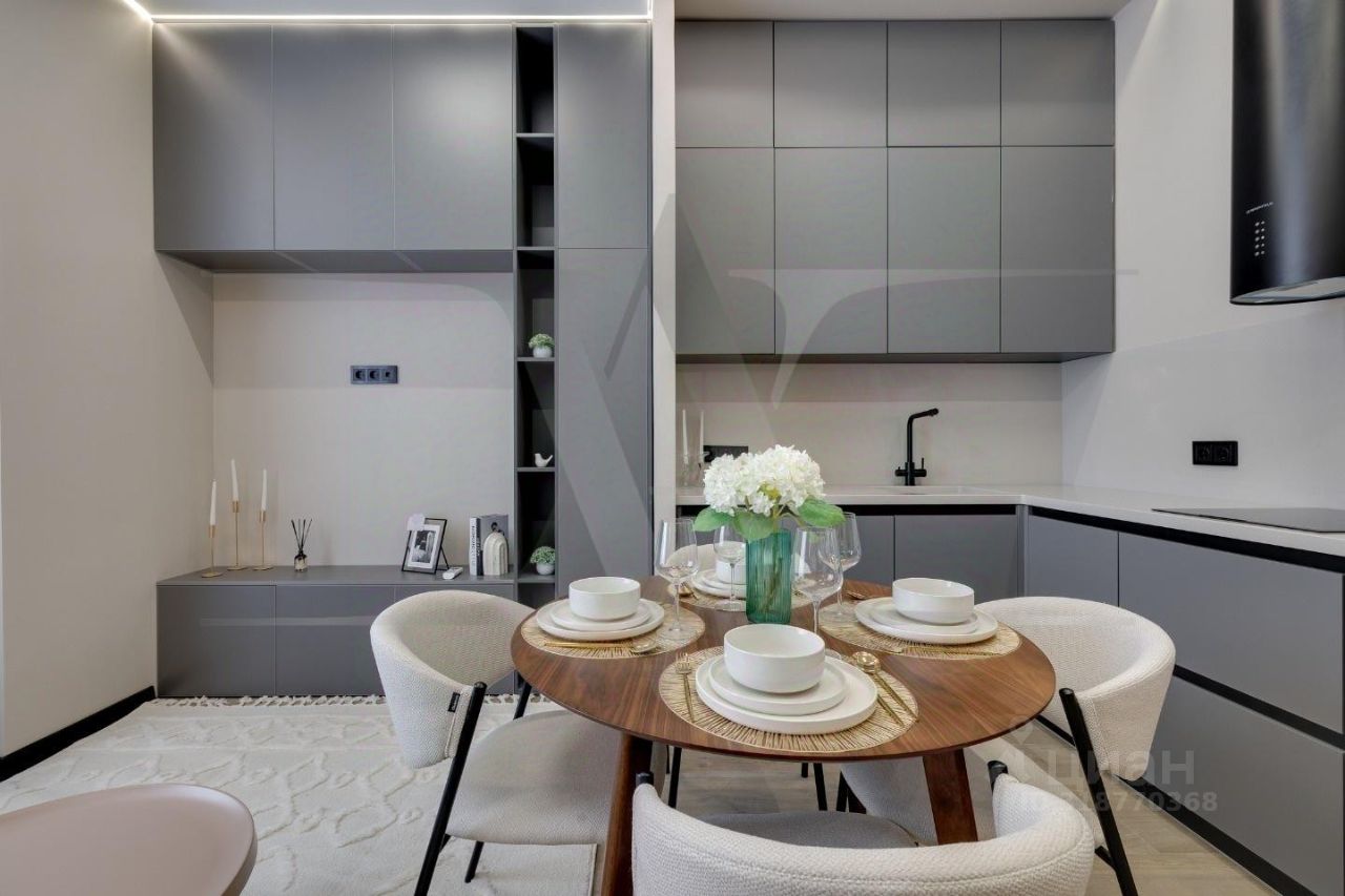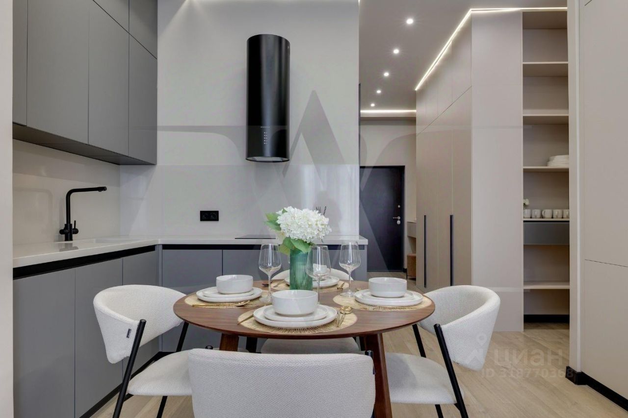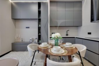 Планировочное решение предусматривает две изолированные комнаты, а также просторную кухню-гостинную. Качественная отделка, высокие потолки. Выполнена разводка электрики, сантехники. Качественные напольные покрытия. Абсолютно новая мебель, кухонный гарнитур со встроенной техникой и предметы интерьера входят в стоимость.