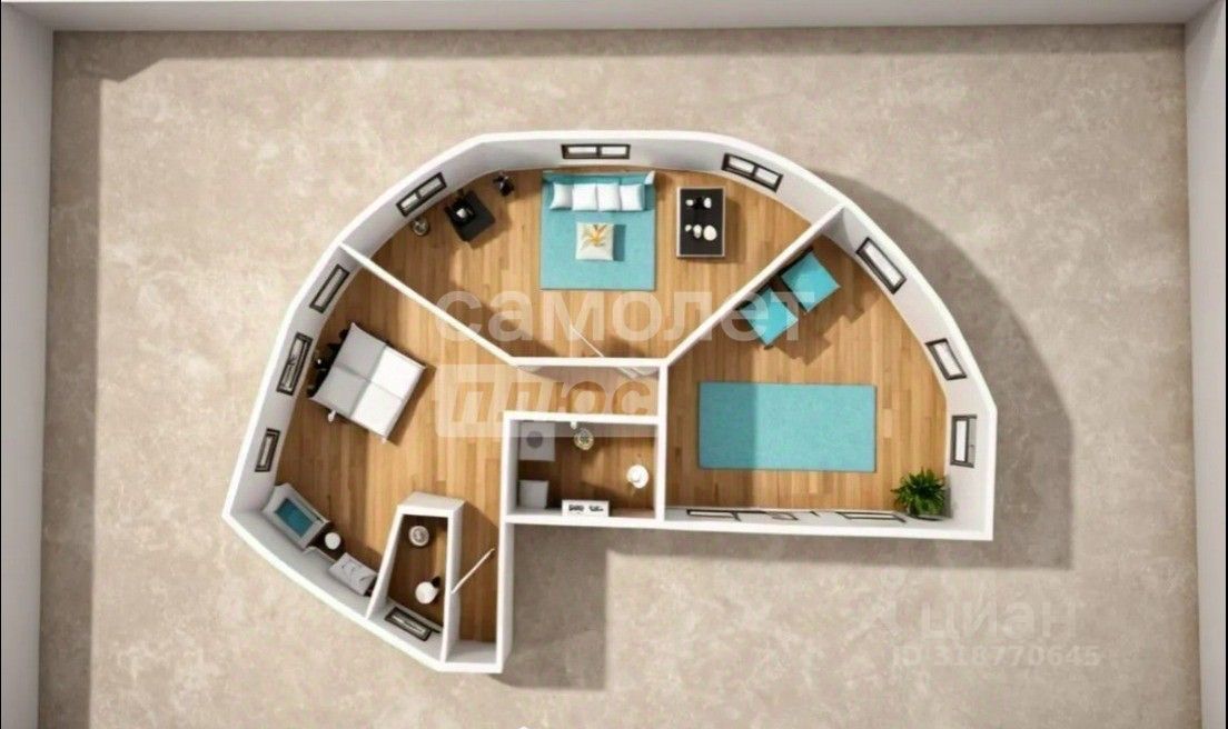 Общая площадь 92 кв.м, интересная планировка, два санузла, три французских балкона, без отделки, только с одной стороны соседи!