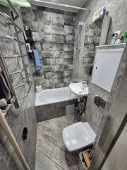 Проведен капитальный ремонт с заменой проводки, труб и полной гидроизоляцией. Кондиционер, кухня Икея. Коридор, кухня, сан узел пол - керамогранит, комнаты - ламинат (все полы выровнены). Состояние - заезжай и живи!