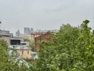 Из окон открывается впечатляющий вид на исторические здания, зеленый двор и силуэты небоскребов Москва-Сити, объединяя в одной панораме классическую и современную архитектуру разных поколений.