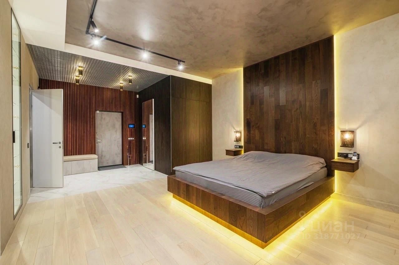 В отделке использовались дорогие экологически чистые материалы, дерево, камень. Дизайн продуман до мелочей, много свободного места, при этом очень много мест для хранения, есть гардеробная комната.