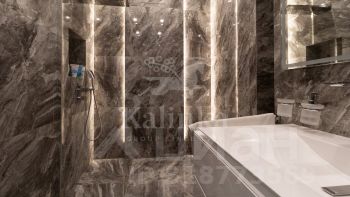 В гостиной установлен камин (Planika) в натуральном мраморе. Итальянская кухня (Cesar) со столешницей из мрамора. Техника Kuppersbusch. Сантехника и мебель в санузлах Италия (GDporcelanosa).