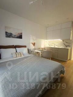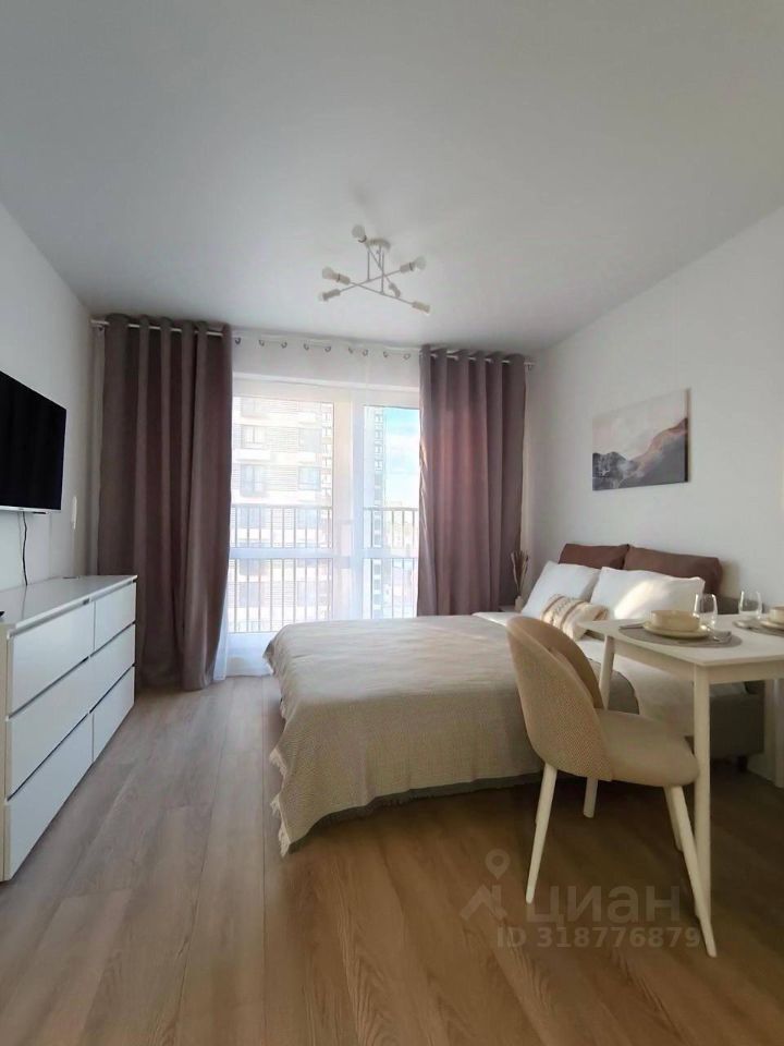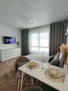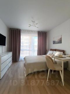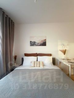 Продается самая большая по размеру студия, которая позволяет зонировать экосистему квартиры для комфортной жизни двух человек или семейной пары с одним малышом. Уютно размещается диван и кровать.